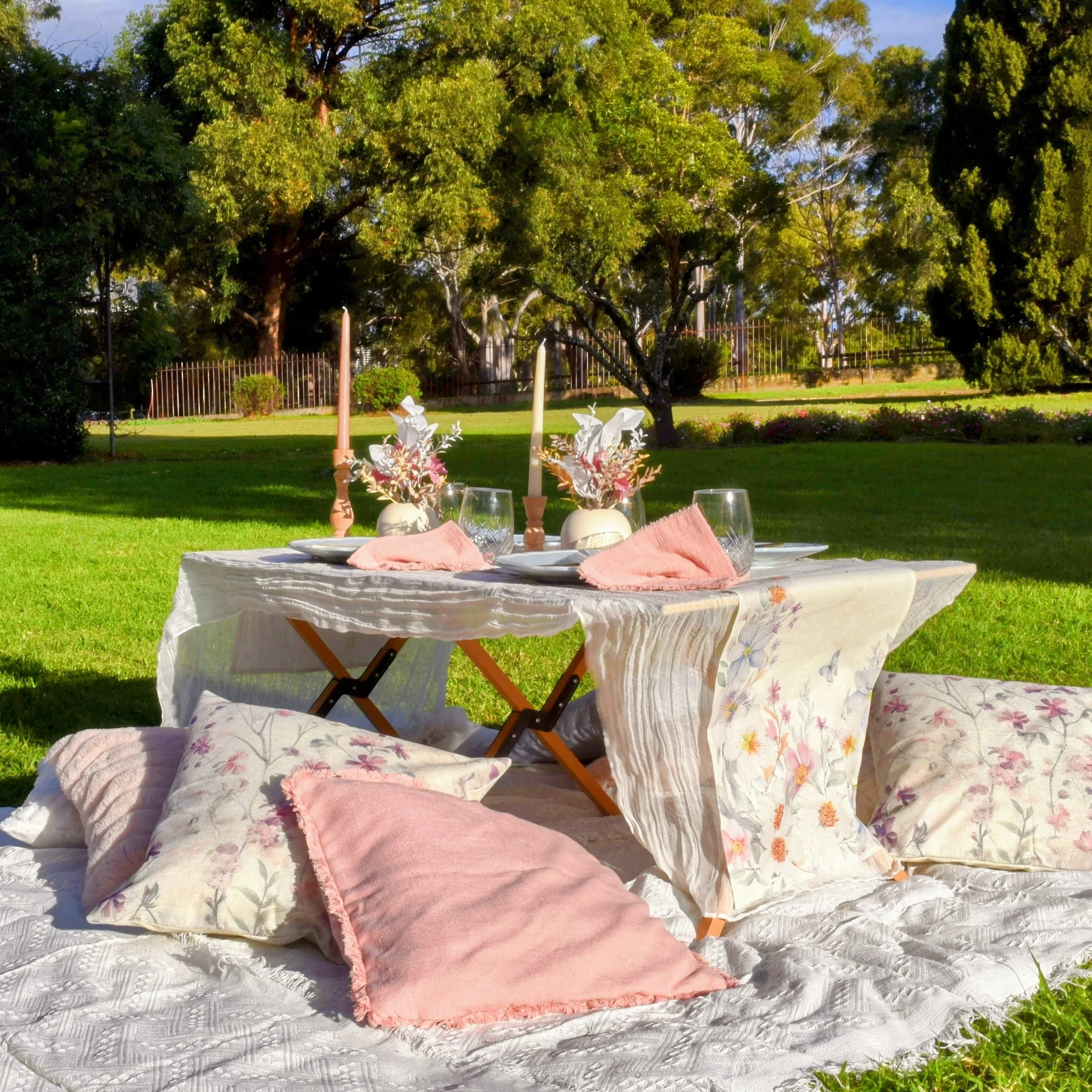 Our carefully curated pink cushions and tableware are perfect for any pink-themed picnic. Whether it be a baby shower, hens party or a children’s birthday party - we’ve got you covered!